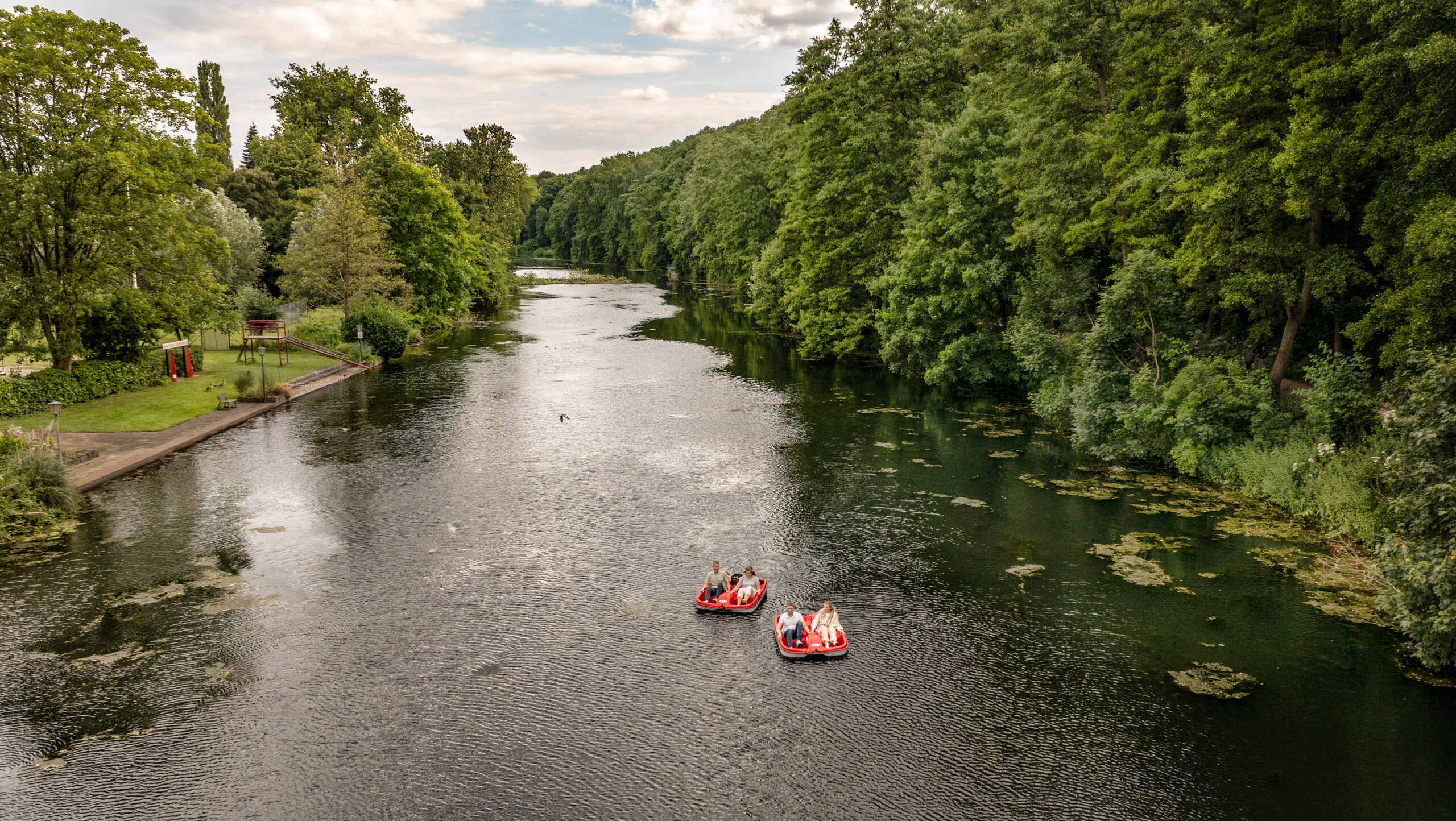 Im Restaurant Königsgarten (Königsgarten 53) kann man Tretboote für eine Tour auf dem Kermisdahl ausleihen.