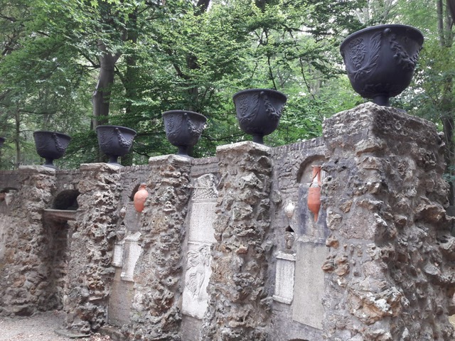 Heute sind dort Nachbildungen römischer Altäre, Votivsteine sowie eingemauerte Gefäße und gusseiserne Vasen aus dem 17. Jahrhundert zu sehen.