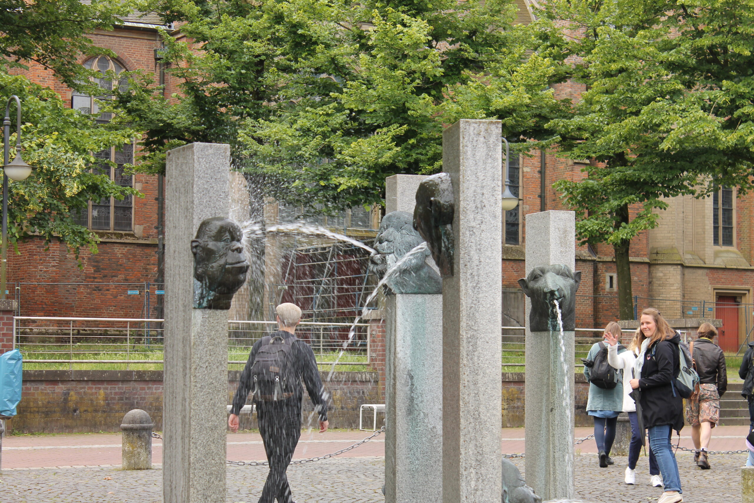 Der Brunnen greift das Thema „Narren“ auf und erinnert an die über 600-jährige Karnevalstradition in Kleve.