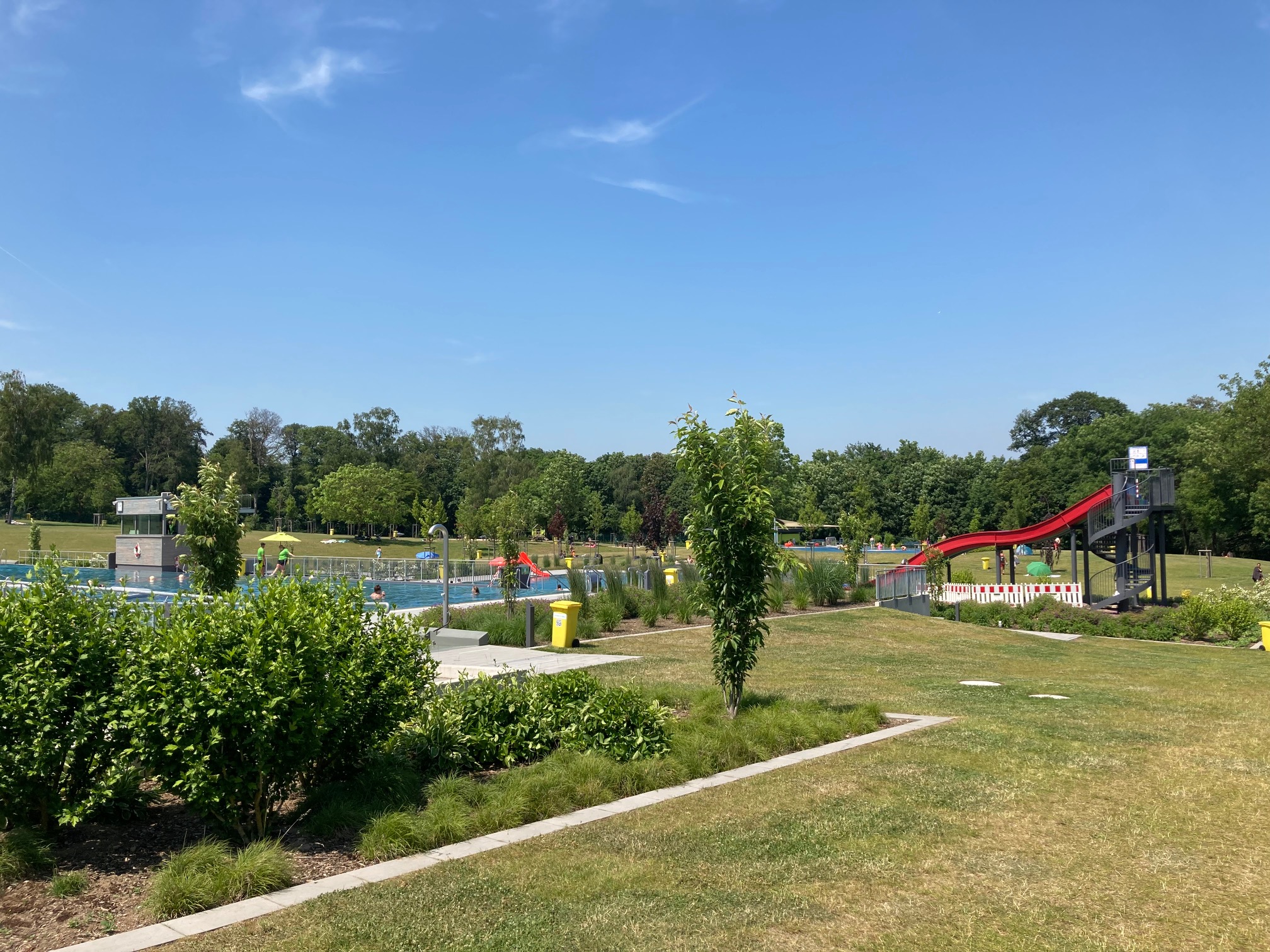 Das Sternbuschbad Kleve bietet Innen- und Außenbecken, Wasserrutschen, einen Sprungturm (1–10 m), einen Kinderbereich mit Spielplatz, Liegewiesen und einen Imbiss – ideal für Sport, Spaß und Erholung.