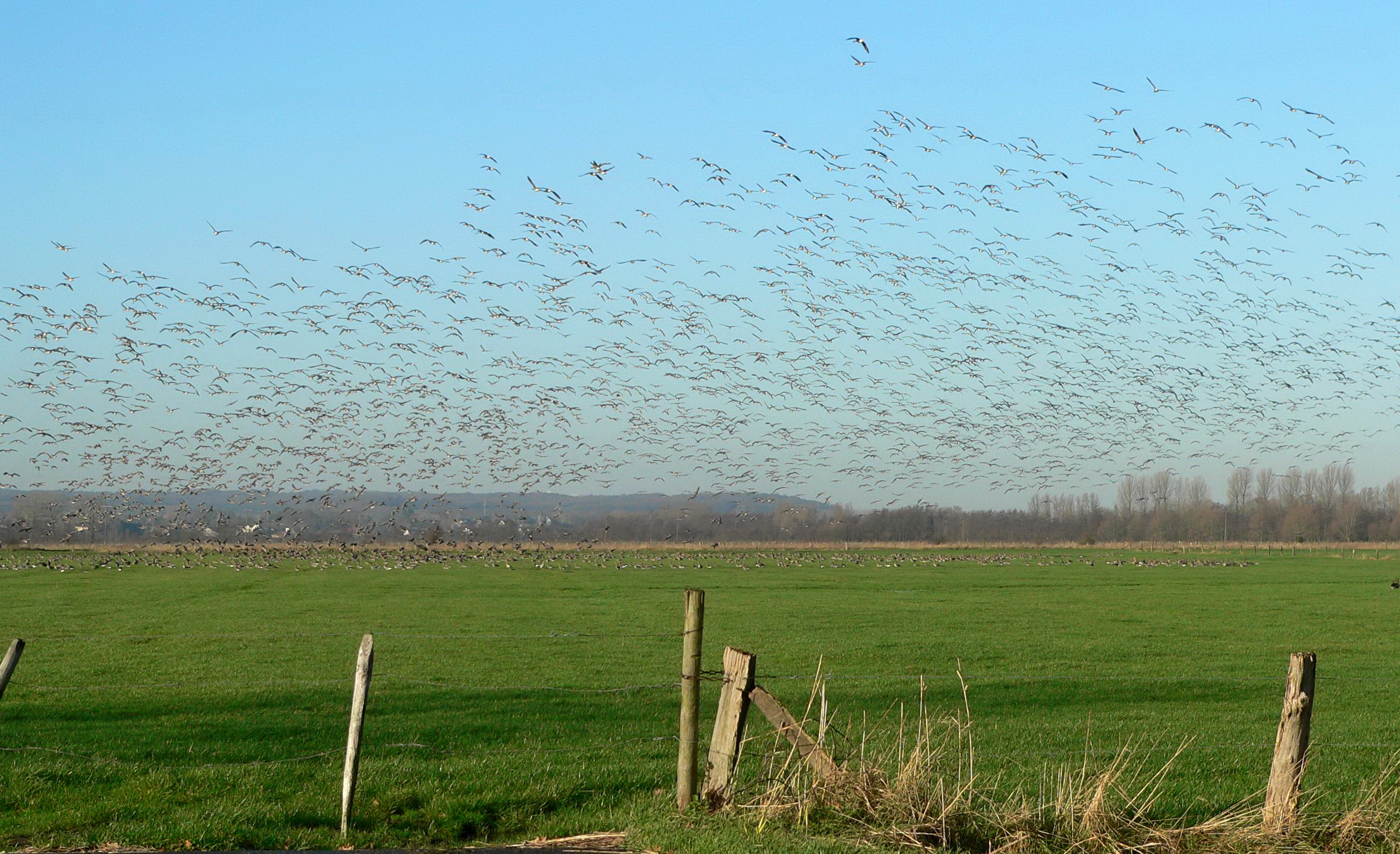 Tausende Wildgänse am Niederrhein beobachten: Entdecken Sie mit dem NABU das Winterquartier der arktischen Zugvögel – bequem per Busexkursion.